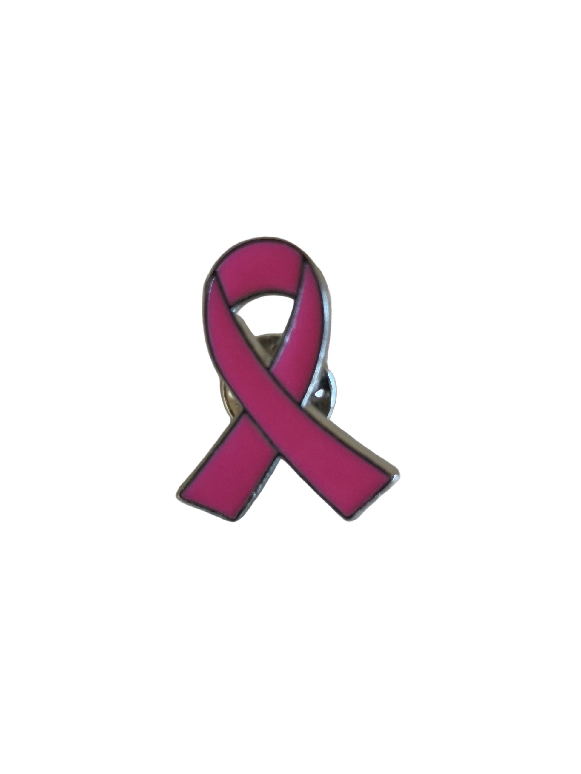 P108 Pink Ribbon brooch with pin 27mm H, 22 mm W