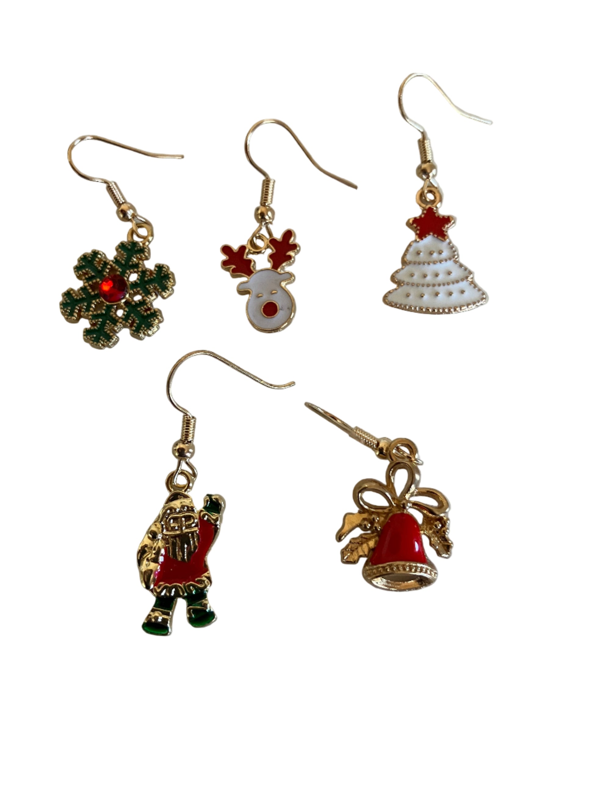 We sell these 5 pairs at a time for $15. Santa, Snowflake, Reindeer etc